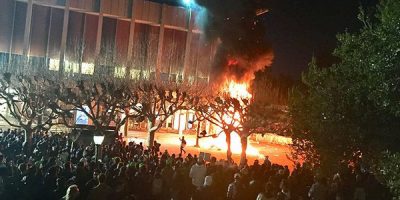 Une manifestation contre la présence d’un rédacteur en chef de Breitbart News à l’Université de Californie à Berkeley, en banlieue de San Francisco, a tourn..