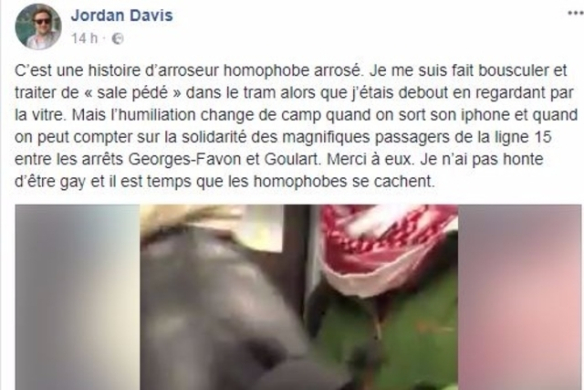 Les autres passagers se rangent du côté du journaliste et contre l’homophobe. Calmement mais avec détermination, ils le poussent vers la sortie à l’arrêt suivant.